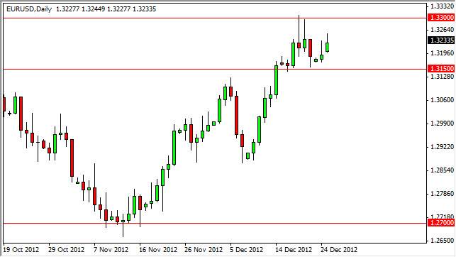 You have to remember that the markets have been focused on the so-called "fiscal cliff” lately and as a result is probably anticipating some type of resolution. If and when it doesn't get it, we could see some massive volatility at that point time, but more than likely any selloff from that would be a buying opportunity as the Federal Reserve has restated its desire to continue the asset purchase program and mission to completely destroy the US dollar. Because of this, the Euro will more than likely continue to gain on the US dollar over the next several months.