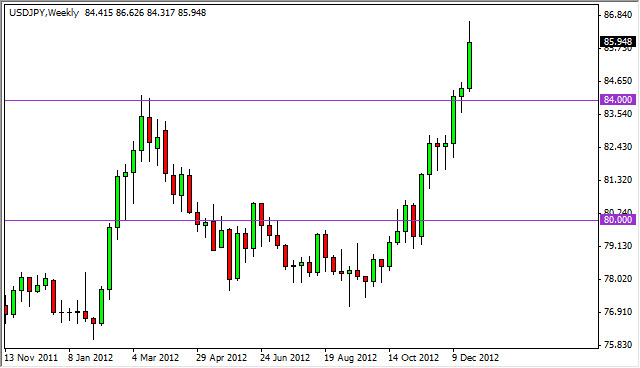 The USD/JPY pair fell on Friday but had a very strong week. The pair continues to breakout and the Bank of Japan should continue to work against the value of the Yen. The opposition leaders of the LDP should press the BoJ to really pummel the currency, and the inflation target will now be 2%. This will require a lot of Yen printing and foreign bond purchases. Because of this, I think this pair continues higher over the long run. I do however see the very real possibility of a pullback to the 84-85 area in the near term. Because of this I feel this is a pair that is better bought on the pullbacks.