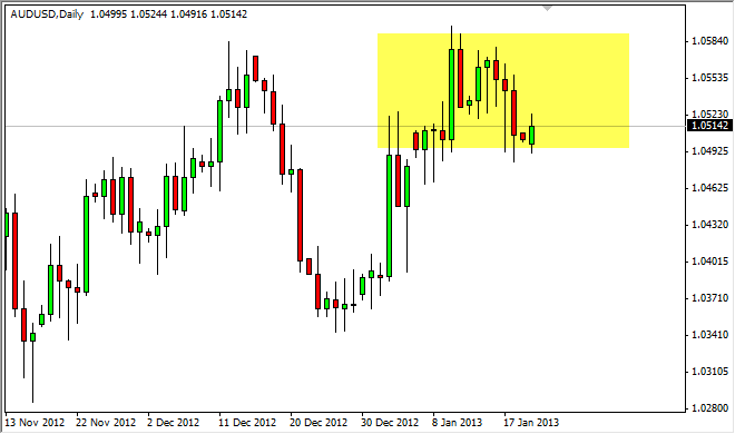 The AUD/USD pair had a slightly positive day on Monday, as the 1.05 level offered support yet again. I firmly believe that this area is the beginning of a significant base, and we are going to eventually see this pair break above the 1.06 level. It’s kind of strange that we haven't already, as the Chinese economic numbers have been better lately. There are a lot of rumblings about being able to trust the Chinese numbers, as some major players have suggested recently that the numbers are faked. My question of course is "Why does this matter now?" After all, it doesn't take a genius to realize that the Chinese have been faking these numbers for several years.