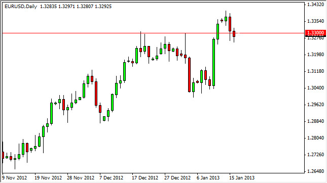 The EUR/USD pair fell during the Wednesday session as the 1.33 level has been retested again. This area was one significant resistance, so it makes sense that we will come back down and try to find out whether the "ceiling becomes the floor." With all that being said, it should be noted that the candle for the day ended up forming a hammer. This hammer of course is a bullish sign, and a break above the top of the hammer of course is a nice buy signal.