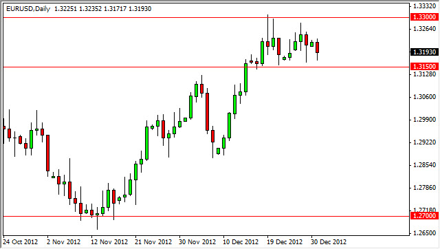 For the time being, I think we will continue to bounce around between 1.3150 and 1.33 or so. Because of this, I think that it is a short-term traders market, and will more than likely be best played off of the 15 minute chart or something of that type. Until we break out of this range, I just simply do not see a media more long-term trade happening.