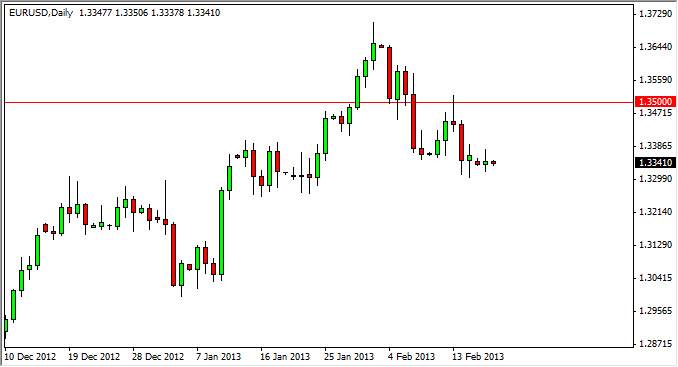 The EUR/USD pair did very little on Monday, but the Americans were away celebrating President’s Day. The largest players in New York were certainly away, and as a result there is only so much that can be read into the price action. With this in mind, the markets did look like it found a bit of support in the 1.3350 area. This session suggested that the noisy area under the current price level could give the sellers some problems, and the fact that we simply could go sideways must enter the conversation as well.
