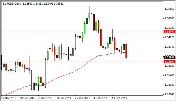 The EUR/USD pair had a rough session on Wednesday as the market initially trying to rally in the early hours, but was turned around and sliced through the 50 day moving average. The 50 day EMA is quite often used by traders to determine short-term momentum in a market based upon the longer-term attitude. The candle slicing through it of course will have caught some people attention, but it is currently sitting on top of the 1.3250 support level, which in my estimation is a bit more important.