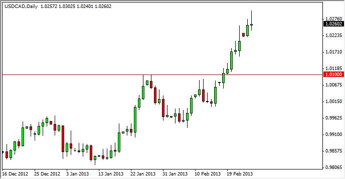 The USD/CAD pair tried to rally during the Tuesday session, but as you can see by the charts we had serious trouble getting above the 1.03 handle. The pushback by the sellers caused the market to form a shooting star, which of course is one of the most bearish candlesticks that you can see.