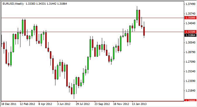 The EUR/USD pair fell significantly as we chomped through the 1.3250 handle. This area had been supportive recently, and the fact that we fell for it does look relatively bearish. However, we see quite a bit of support at the 1.3150 in my opinion, and we have to worry about the Italian elections on the 25th. Because of this, is very difficult, with some type of bias in this marketplace, but I do believe that we may fall a bit further to the 1.30 handle, and then simply continue higher.