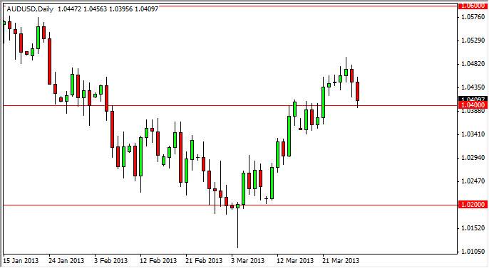 The AUD/USD pair fell during the session on Thursday, testing the 1.04 level as support. So far, it has held but it should be said that we are closing just above it. The area just below the 1.04 level does look rather congested though, and as a result I believe that we will see supportive action.