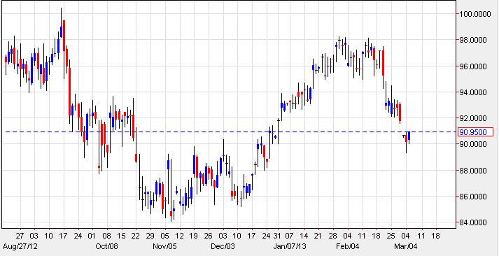 One of the main reasons I think so is that the Brent market looks extraordinarily strong at this point, and has a much easier path than this one. Because of this, I think that oil in general should go higher, although this one may underperform some of the other oil markets around the world. If that's the case, it will be more but grind higher, and I do think that we will eventually find ourselves in a trading range of $90.00 to roughly $95.00 going forward. We could go higher, perhaps as high as $98.00, but in the end I think the last $2.00 of that area would be difficult to overcome.
