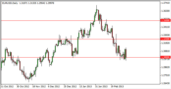 Essentially, I am going to watch this pair and only sell rallies at this point. Because of this, a breakdown of the last thing I want to see, and I would welcome more consolidation between 1.2975 and 1.3150. I just simply going to sell this pair every time it rallies, and let it and that that. This way, I have the ability to take advantage of a breakdown of 1.30 if we get momentum, but at the same time not find myself selling at the absolute bottom. Also, in order to break down the 1.30 level, we will need more people the pile when and push this pair down.