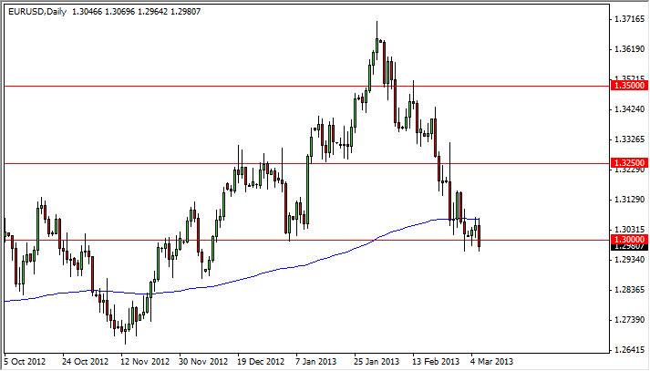 The EUR/USD pair had a negative session on Wednesday, as a close below the 1.30 level for the first time. It has fell below that level previously, but never close therefore the session, a small but crucial difference. Looking at this chart, it's obvious that the Euro is out-of-favor, and the blue line represents the 200 day exponential moving average. As you can see we are just below that, and have certainly changed trend according to basic technical analysis.
