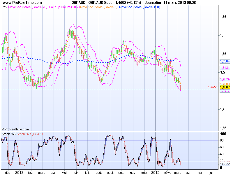 The GBP/AUD pair is currently approaching a historical major support at 1.4600 which could lead markets to bounce back in response to the important bearish movement from the past few weeks. From the technical indicators point of view, the stochastic could cross its signal during the next sessions and thus give a bullish signal. Investors will therefore be bullish on this pair with a stop below the last low to target a return on the MA20. Direction: Up Entry: 1.4602 Stop-loss: 1.45