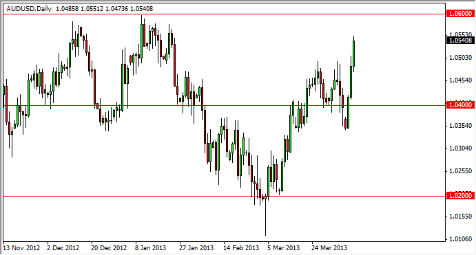 The AUD/USD pair shot straight up during the session on Wednesday, showing strength yet again from third session in a row. As you can see, we are approaching the 1.0550 level at the close, and this of course is a very bullish sign. However, I have certain reservations about this pair breakdown at this point, mainly having to do more with momentum than anything else.