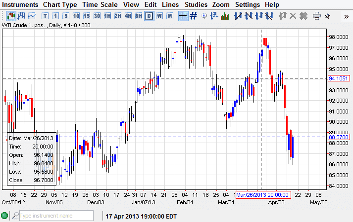 Just below, at the $85.00 level, there is a ton of support. There is a massive symmetric triangle that is trying to form on the weekly chart, and it does in fact cross through the $85.00 area, meaning that the market should try to hold in this general vicinity. If it does not however, that would be an extraordinarily bearish sign, and have me shorting this market wildly.