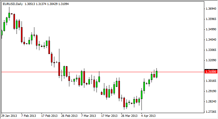 The EUR/USD pair went higher during the Thursday session, and actually managed to crack the 1.31 handle for the second day in a row. It should be stated that some of the gains were given back, and the breakout wasn't exactly impressive either. However, it is what it is, and we find ourselves above the 1.31 handle.