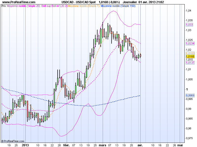 The USDCAD pair, strongly bullish since the beginning of the year, corrected for several weeks and validates its entry into a downtrend with the crossing of moving averages at 7 and 20 sessions. In this context, investors will use the return on the moving average at 7 sessions to enter the movement with a stop placed above the moving average at 20 sessions. The Bollinger Bands divergence indicates that we may test the former resistance at 1.01. Direction: Down Entry: 1.0168 Stop-loss: 1.0250 Take-profit: 1.0110