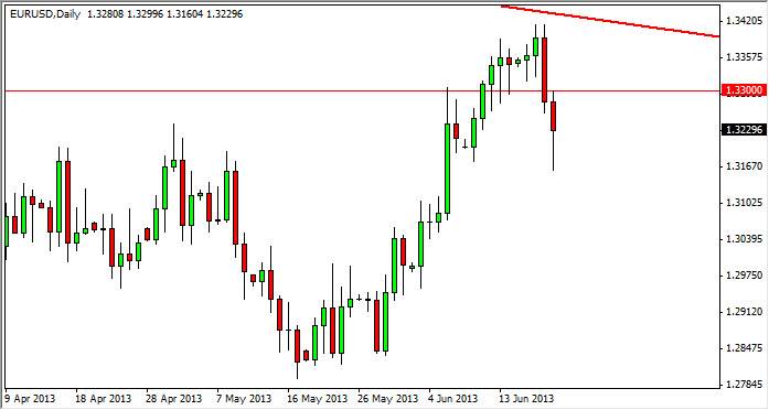 The EUR/USD pair fell like everything else. Measured in US dollars during the session on Thursday. However, we did see a bit of support near the 1.32 handle, causing a bit of a bounce by the end of the session. In the end, the market still looks fairly weak, but it does appear that the 1.32 level will offer enough support to at least keep the market within the previous trading zone.
