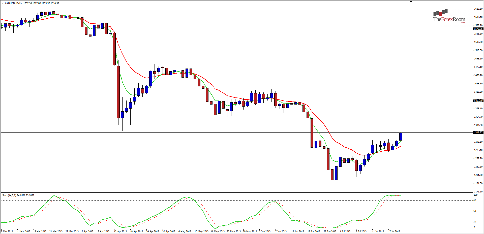 Gold rallied at the open of the Asian session today, rocketing over 200 pips higher in the first hour to its current price of 1318.06 on what appears to be some dollar weakness as the USD/JPY also picked up about 100 pips from its close on Friday. Resistance from the April 16 low at 1321.49 and May 20th low at 1337.23 will be the immediate hurdle for the bulls and then 1400 where the pair faltered on the way down to its recent 2013 low at 1180.28. Above 1400, especially with a strong close above 1450, we could see a rally back to March lows at 1570 give or take a few dozen pips. 1300 will now act as support with 1250-1270 and 1180 being the obvious short term support levels. Back below 1180 opens up the possibility of a run to 1000 where highs from 2008 & 2009 come into play.