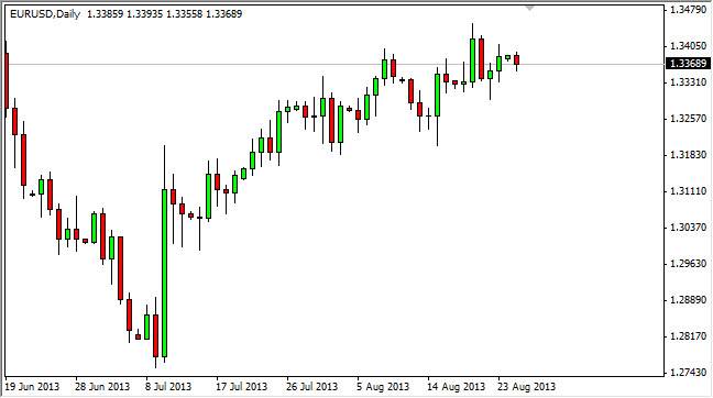 The Federal Reserve and whether or not it's going to taper off of quantitative easing has taken over the marketplace, and as a result the Federal Reserve will more than likely determine where the Euro goes. After all, we all know that the European Union has recently exited recession, but that only gave the Euro somewhat of a boost. In the end, the Federal Reserve controls the currency markets most of the time, and I believe that is exactly what we're seeing here.