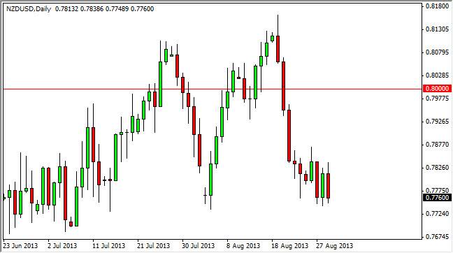 The NZD/USD pair went back and forth during the session on Thursday, but ultimately sold off. In the end, we are simply bouncing around just above the 0.77 handle, an area that has been very supportive. However, this makes sense as the New Zealand dollar is so heavily correlated to the commodity markets, which is correlated to the Federal Reserve and whether or not quantitative easing is going to be cut back, or even end.