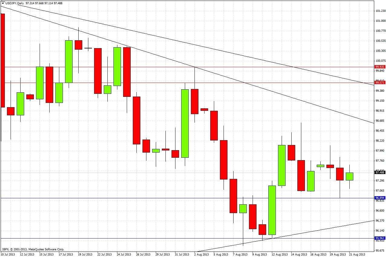 < style="font-family:arial,helvetica,sans-serif;">It is worth taking notice that the JPY is also in long-term technical triangles against the EUR and GBP, but is strong against the AUD (as is everything else). So it seems that it is JPY that is really the engine of the consolidation. This tells us that until we get a breakout of the triangle, the real trading action in the world of forex is likely to be driven by USD or other currencies.