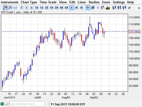 The Federal Reserve and whether or not it chooses to taper off of quantitative easing will be the biggest factor in this market. However, there are Middle Eastern concerns as well, so it will be a very volatile market overall. Nonetheless, I do believe that this market will eventually find its footing based upon what the Federal Reserve ends up doing. If they do in fact taper off of quantitative easing, that drive the value of the Dollar higher, which of course send this market lower most of the time. On the other hand, if they do not taper, I believe that this market will skyrocket as the Dollar crumbles.