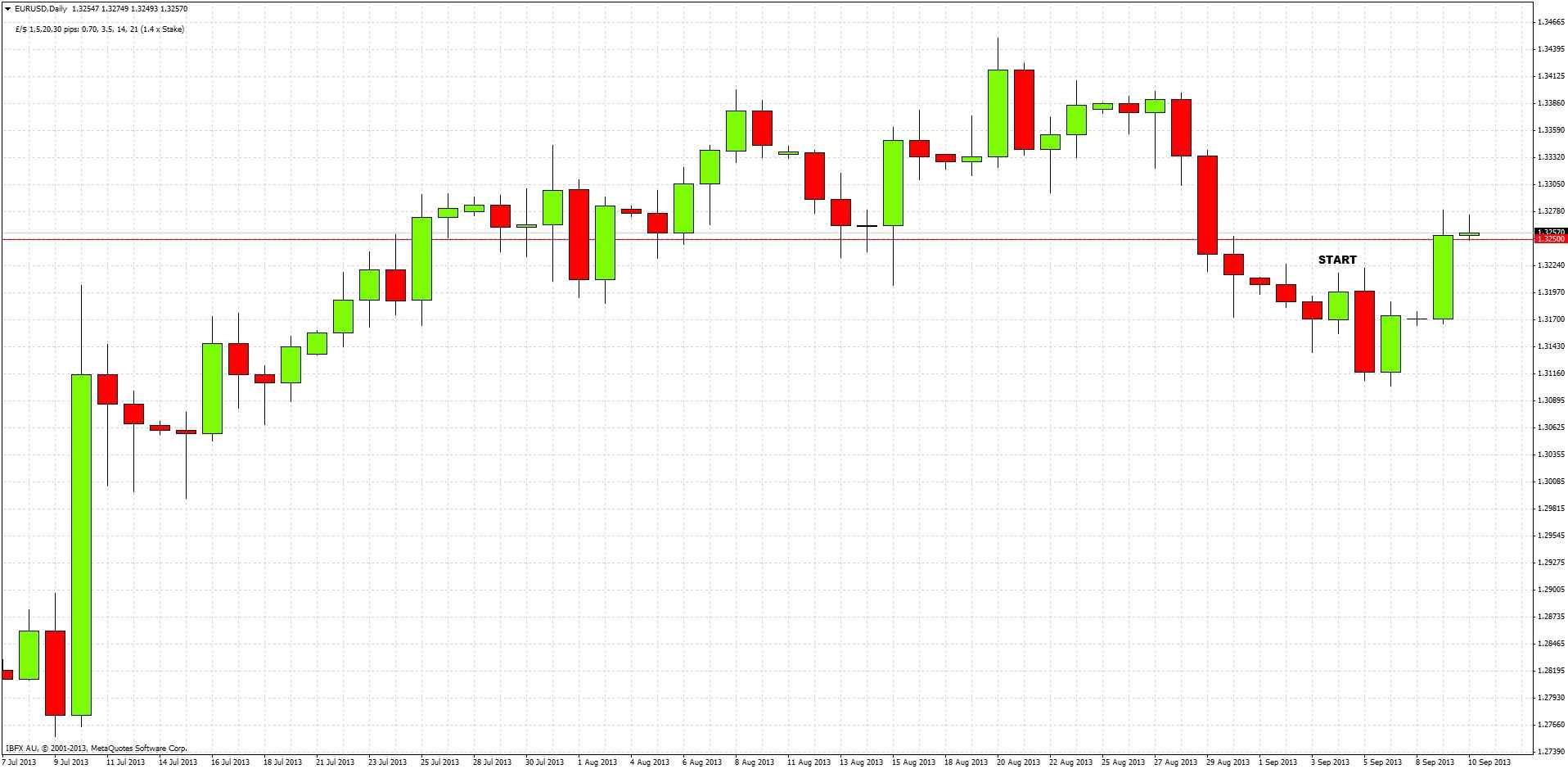 The prediction was correct insofar as we did grind down slowly and we did get a bounce up to 1.32 or higher. However we did not reach the minor support levels below 1.31, and we did not get a reversal at 1.3250 although so far price has not pushed far beyond that level. Overall, the prediction should have been enough to keep anyone out of trouble.