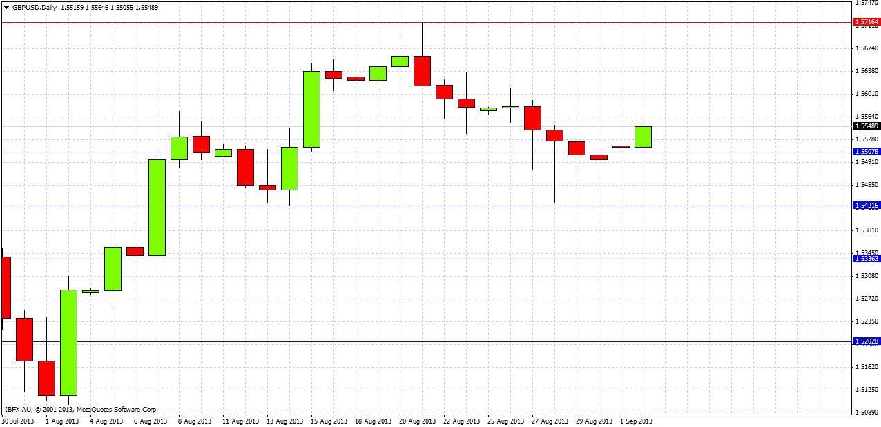 We can see that this pair is pretty range-bound, and also that August was a bullish reversal. This suggests that we are going to see a retest of last month’s high at 1.5716 before we reach the low at 1.5102 again.