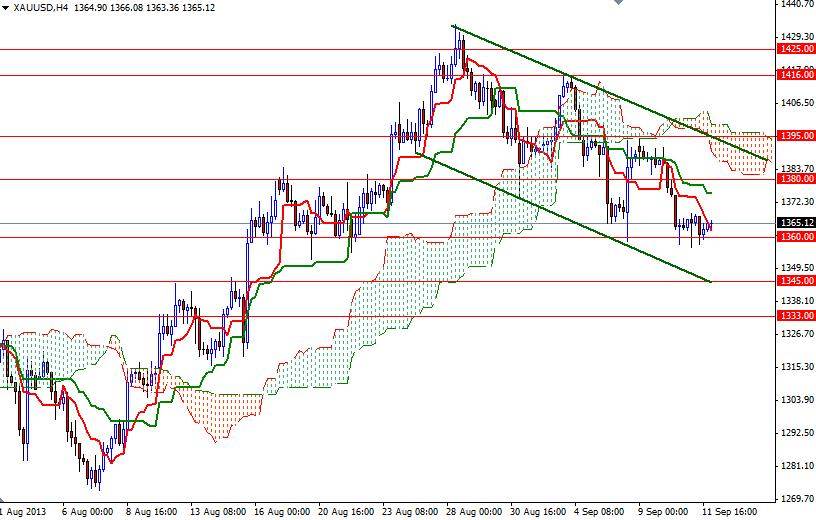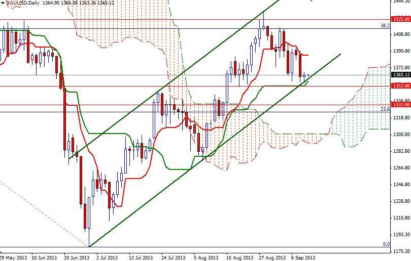 Recently, gold prices have been under the pressure on reduced likelihood of a U.S. military action against Syria. In the meantime, the markets are still waiting to see how the Federal Reserve will react to the changes in the economy and how U.S. politicians deal with the debt ceiling issue. The reduction of asset purchases may be the catalyst that the bears need to push gold prices lower but this could also lead some investors to shift money from equities to gold.