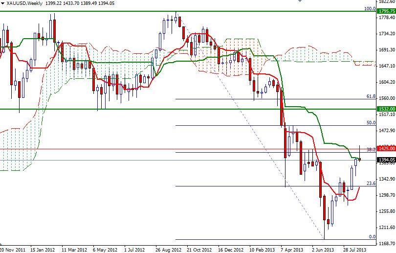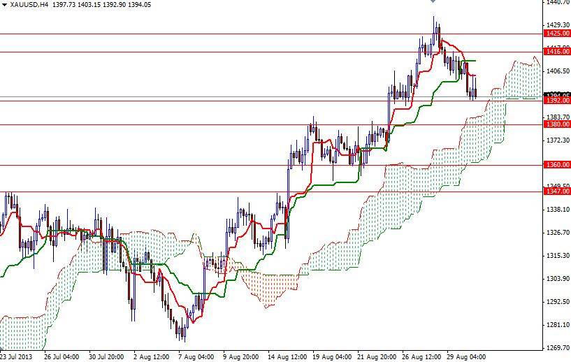 A heavy slate of key economic indicators will be released this week, including ADP non-farm employment change, ISM manufacturing and services PMIs, but of course the highlight of the week will come on Friday when the Labor Department releases its employment report for August. In the short term, I think the key levels to watch will be 1392 and 1408. If the bulls can push the pair above the 1408 level, we might see another bullish attempt to break through (1416) 1425. Only a close above this level could make me think that the bulls are strong enough to tackle 1455. If prices fall below 1392 and continue to head south, expect to see support at 1380 and 1360.