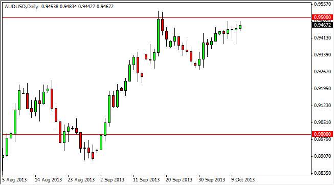 The AUD/USD pair rose during the session on Friday, but as you can see still struggles to get above the 0.95 handle. This area is significant resistance, so it doesn't surprise me although we continue to meander just below it. Quite frankly, I think that eventually this market does go higher, but we need to see the 0.9550 print or higher on the daily chart in order to feel significantly confident of the move higher.