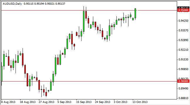 The AUD/USD pair rose during the session on Monday, breaking through the 0.95 handle finally. In fact, this market now looks like it's poised to breakout to the upside, and finally get above the 0.9550 level that I have been looking for in order to start buying. Ultimately, I believe that the US dollar will be on its back foot going forward, and because of that I think that the pair should be stronger over time.