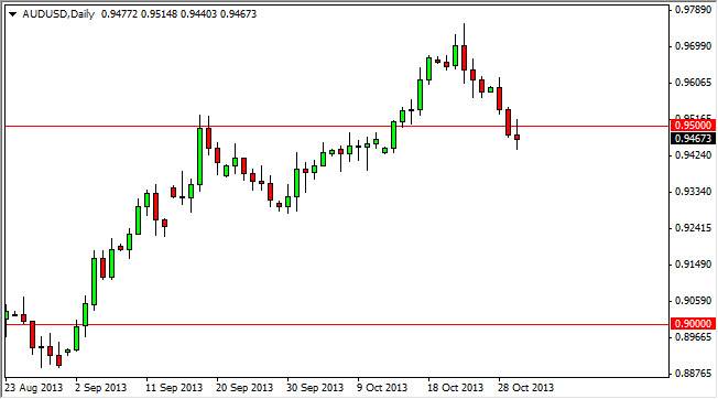The AUD/USD pair tried to rally during the session on Wednesday, but as you can see the 0.95 level offered resistance yet again, forming a shooting star by the time the markets closed. However, this market does sit on top of significant support all the way down to the 0.93 handle, and as a result I don't think that the markets are going to be able to break down too far from here even though the candlestick looks very bearish. Going forward, I think that this will be more about the US dollar than the Australian dollar, simply based upon the fact that the Federal Reserve may or may not be able to taper off of quantitative easing. In the end, I don't think they can based upon poor jobs numbers.