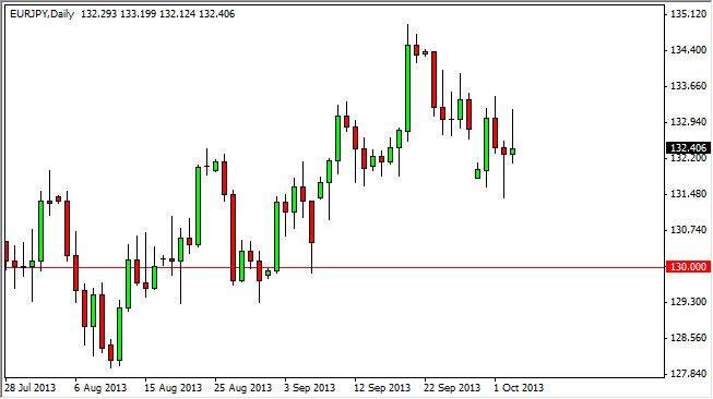 I still believe that the 130 level is the "floor" in this market. Because of that, I think it even if we fall from here I won't be selling. I will simply be looking for some type of supportive candle in order to start buying again. I still believe in the longer-term viability of the uptrend in this pair, especially considering that the Europeans are exiting a recession while the Japanese still have a central bank that is trying to keep monetary policy as easy as possible.