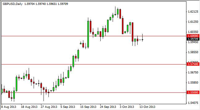 I believe that this market will eventually go looking for the 1.62 handle, but it's probably going to take some type of headline to push the market higher. As far as selling is concerned, I see no real chance of doing so, especially looking at the 1.59 handle area as a support area, and then below there the 1.5750 level as well. Because of this, I am either waiting for break of the top of the Monday shooting star, or a pullback and some type of supportive candle.