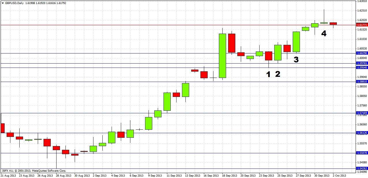 1. A daily close below the weekly open at 1.6148 would be strongly indicative that the upwards trend is over.