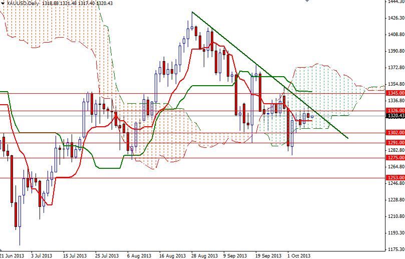 The XAU/USD pair closed the session slightly lower than opening but remained within the last three days trading range. While the dollar has been suffering due to the U.S. government shutdown and congressional dispute over the debt ceiling, many investors believe that Democrats and Republicans can find a compromise before the October 17 deadline when the Congress must decide whether to raise the government's borrowing limit or face the risk of a catastrophic debt default.