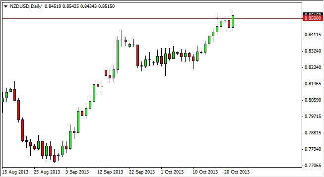 The NZD/USD pair rose during the session on Tuesday as all currencies in general gained against the US dollar. This of course was due to the Federal Reserve not being able to taper off of quantitative easing with such poor economic numbers coming out United States, specifically the nonfarm payrolls number. As the Federal Reserve is paying close attention to the employment situation in the United States, we now know that simply watching the nonfarm payroll numbers will be one of the most important things to do when it comes to trading Forex.