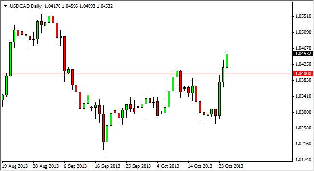 The USD/CAD pair rose during the session on Friday, breaking above the 1.0450 handle at the close. This is a continuation of the move that smash through the resistance at the 1.04 level, showing that the market is in fact ready to breakout towards 1.05 level, and then possibly as high as 1.06 level. If we can get above the 1.06 level, I firmly believe that we will eventually hit the 1.10 level as it is the next significant resistance on the longer-term charts.