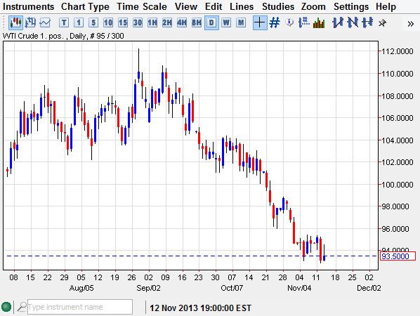 The WTI Crude Oil markets tried to rally during the session on Wednesday, but as you can see got sold off towards the end of the day in order to form a shooting star. This is a bit disconcerting though, as it sits right above the $93 support level. The shooting star normally means that we are going to see more selling pressure, and this could lead to even lower oil prices. This could be due to several different factors, and the US dollar strengthening overall certainly is not helping the situation in the oil markets at this point.