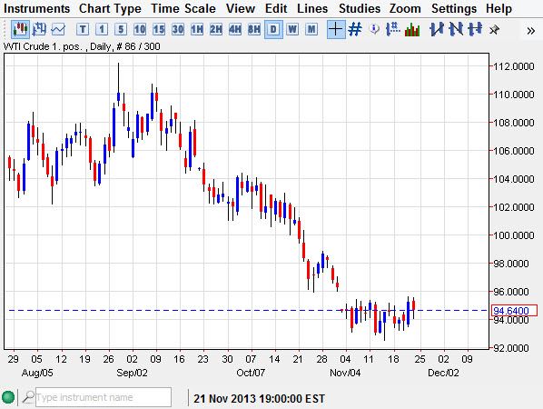 The support level below will be tough to break though, and because of this I think that the market will have to hear “taper” from the Fed in order to get below the $90 level for any real length of time. The $98.50 level should be resistive, but even that could be overcome in the end as the market would head towards the $100 level next. Regardless, this market would more than likely continue to chop around overall, and as a result I would be more willing to play both sides of the market via the options markets in order to take advantage of the volatility.