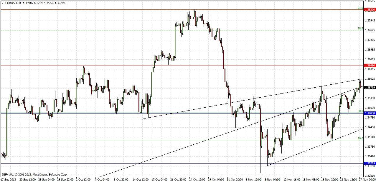 Although the action has been bullish during the past two weeks and also over recent days, and we have just broken above the 50% retracement of the fall from 1.3830 to 1.3300 with a bullish engulfing candle on the daily chart, a false break of the upper trend line with a spike up to 1.3650 possibly driven by the news provides a good opportunity to short. It is possible the upper trend line will hold anyway, in which case the trade would not be triggered.