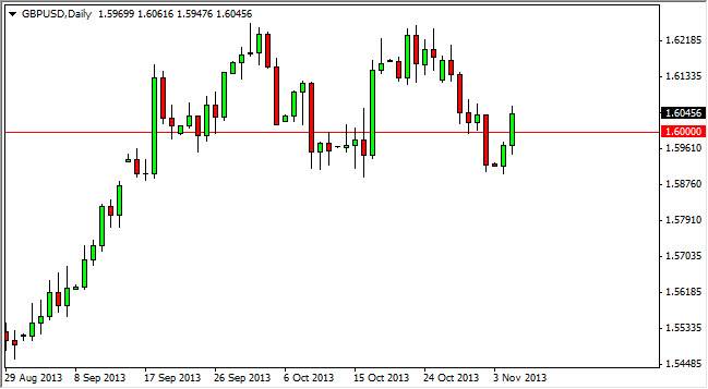 Typically, when you see consolidation like this it is simply the market taking a breather before going higher. After all, consolidation normally turns into continuation. I see the markets punishing the Dollar for some time now, because quite frankly I do not think that the jobs market is getting any better in the United States. With that, the Federal Reserve will continue to pump money into the marketplace buying bonds, which of course will drive down yields in the United States. This of course has money looking for higher yields in other countries. The yields in the United Kingdom certainly will continue to be higher, and this will not be heard at all by the fact that their greatest trading partner the European Union, has recently exited a recession. That being the case, the Pound should continue to appreciate against the Dollar.