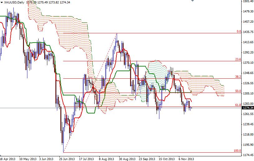 The XAU/USD pair is trading in a relatively tight range during the Asian session today. Yesterday the pair tried to break below 1268 but more dovish comments from top Federal Reserve officials helped buyers to defend this support level. Federal Reserve Bank of Chicago President Charles Evans said “I am not in a hurry myself to reduce the flow of purchases. I’d rather wait just a little bit longer and have more confidence” and Federal Reserve Chairman Ben Bernanke reiterated the central bank will not change its highly accommodative policies until the outlook for the labor market has improved substantially.