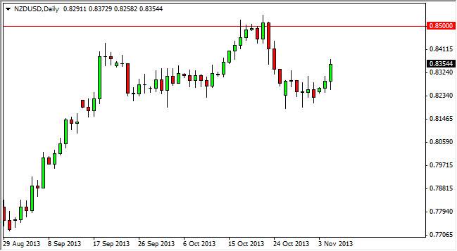 The NZD/USD pair rose during the session on Tuesday, closing above the 0.8350 handle. This of course was the signal that I had been looking for, and as a result I think this market will continue to go higher, based upon the fact that we have broken above a relatively significant resistance barrier. The real question now is whether or not we can get above the 0.85 handle, which I feel is the next destination for this market. Because of this, on a break of the highs from the session on Tuesday, I will be buying the New Zealand dollar.