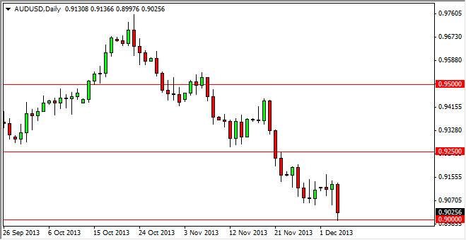 The AUD/USD pair fell during the session on Wednesday, slamming into the 0.90 level, an area that I have been watching for some time. Because of the psychological aspect of a round number like this, it does not surprise me that it did hold the sellers away, and cause a slight bounce by the end of the session. The real question comes now as to whether or not it can hold the market for any significant length of time.