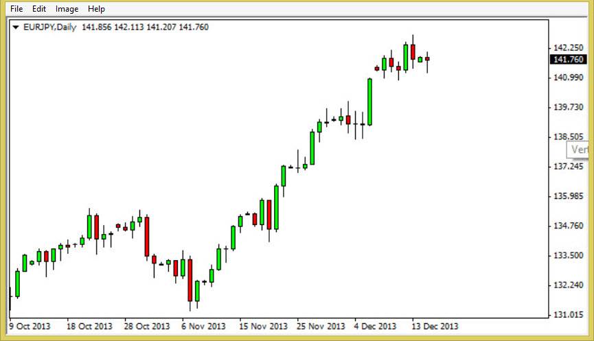 All things being equal, I think that there is a significant amount of support at the 139 handle as well, so therefore I think even if we can break down below the 141 level, this pair will attract enough buying to keep the uptrend fairly buoyant. To the outside, I still believe that this market is going to target the 145 handle, and probably much higher than that during 2014. However, again I would say that the end of the year may keep a little bit of a lid on this market, but in the end if you are patient enough you should be rewarded for your long positions.