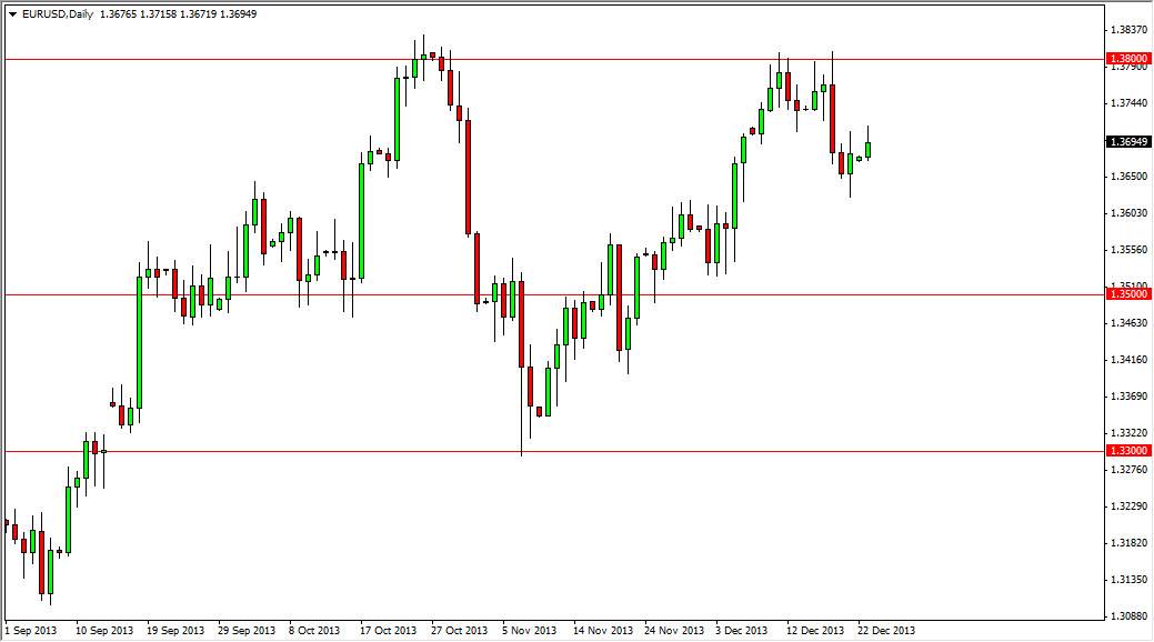 The EUR/USD pair rose during the session on Monday, but as you can see gave back about half of the gains by the time the market closed. The 1.37 level has offered a bit of resistance, but quite frankly I think it has more to do with the fact that we are getting to close the Christmas than any type of significant resistance that’s going to keep the market from doing what it wants to. Ultimately, I think it’s just the beginning of resistance at the 1.37 level that we are seeing, and it extends all the way to the 1.38 handle. It is at the 1.38 handle that we will see a much more significant battle unfold.
