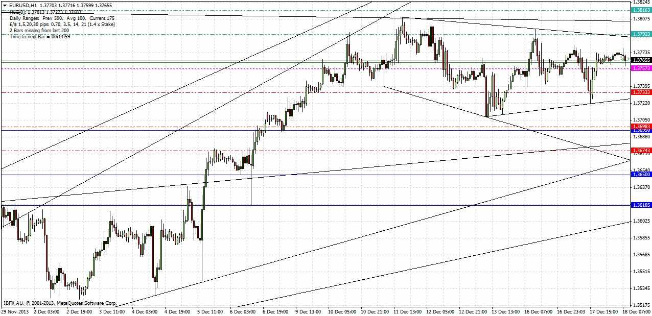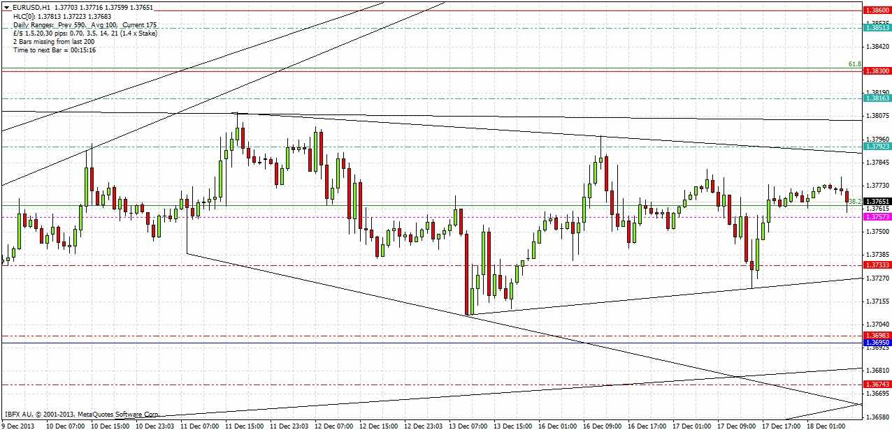 Enter short at the next bar break of an hourly pin or strong engulfing or outside bar rejecting and closing below the resistance level of 1.3830. If this level is not touched and rejected by the same hourly bar, or if an hourly bar closes more than a few pips above this level, the trade is immediately invalidated and should not be taken.