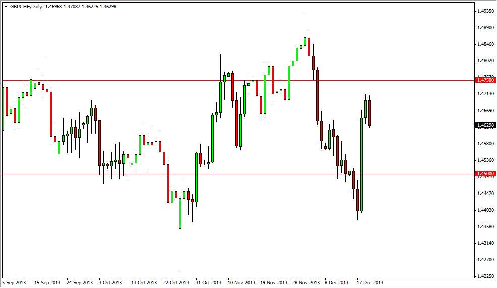 The GBP/CHF pair fell on Friday, pulling back to the 1.4629 level. However, there is a little bit of a precedence for this area to be supportive based upon earlier in the month of December. The choppiness that we saw back then should offer support to the buyers, and as a result I am interested in buying this pair on supportive looking candles, probably off of the hourly chart.