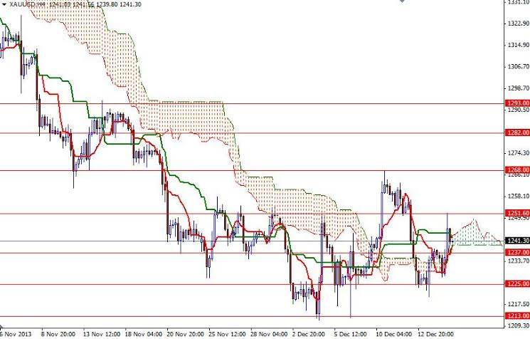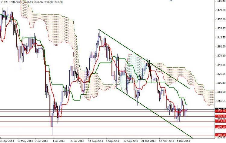 According to figures from the Federal Reserve, industrial output jumped 1.1% and manufacturing activity in the New York region climbed to 1.1 from -2.2 a month earlier. The recent price action indicates that gold market participants are in a cautious mode ahead of the Federal Reserve's two-day policy meeting which begins today. Although, some investors think that the healthy U.S. employment data and budget deal out of Washington might convince FOMC members to make a move, others think that a few strong jobs numbers don’t confirm a trend and policy makers aren’t in a big rush to do anything drastic at the end of the year. Until the announcement, gold prices will probably continue to remain between the 1252 and 1225 levels. Since the bearish side of the boat is so overcrowded, I would like to wait and see the market's reaction.