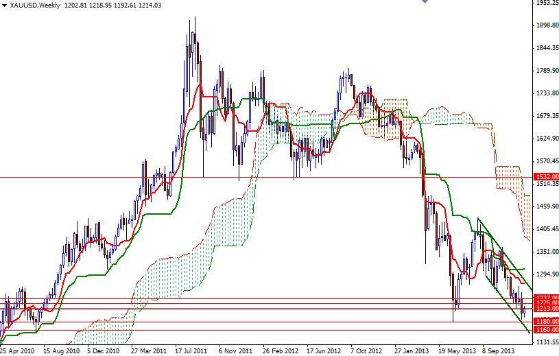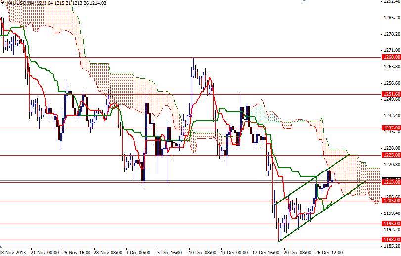 Gold prices rose %0.9 over the course of the week after the bulls managed to hold prices above the 1200 level. But the pair formed an inside week pattern, meaning that the entire weekly trading range was within the price range of the previous week. In my previous analysis, I had told that the downside might be limited with players taking profits to close their books before leaving for the New Year holidays so this small bounce is not really surprising.